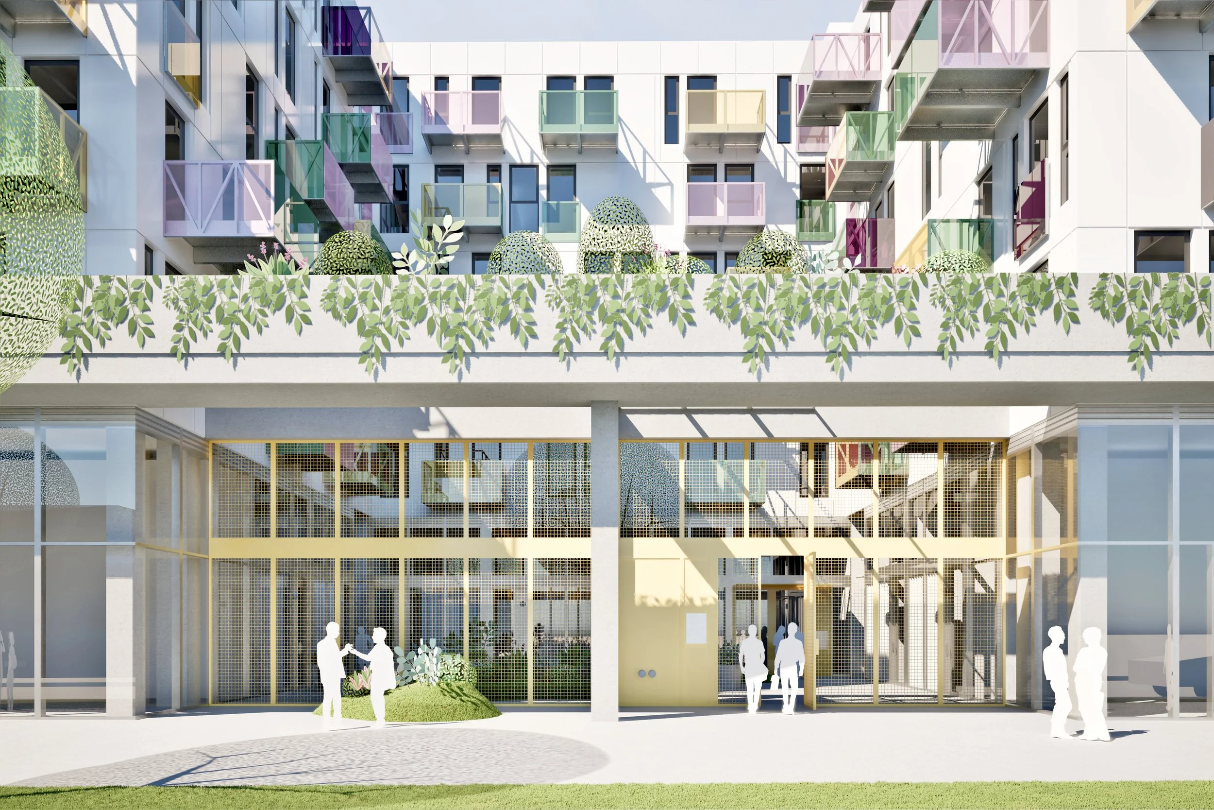 The new residential building provides 129-unit mix of rental homes with a good diversity mix including live/work and loft units, studios, one-bedrooms and family-oriented housing consisting of two and three bedrooms. At the heart of the building is the ground-level courtyard, creating a semi-private interior gathering space, activated by a series of live-work units that transition on the public commercial street.